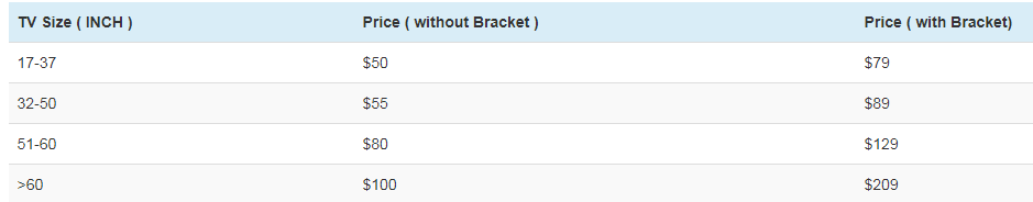 Fixed Bracket Installation Charges